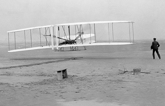 В 1903 году американские изобретатели, авиаконструкторы и летчики, братья Уилбер и Орвилл Райт первыми в мире совершили полет на построенном ими самолете с двигателем внутреннего сгорания.